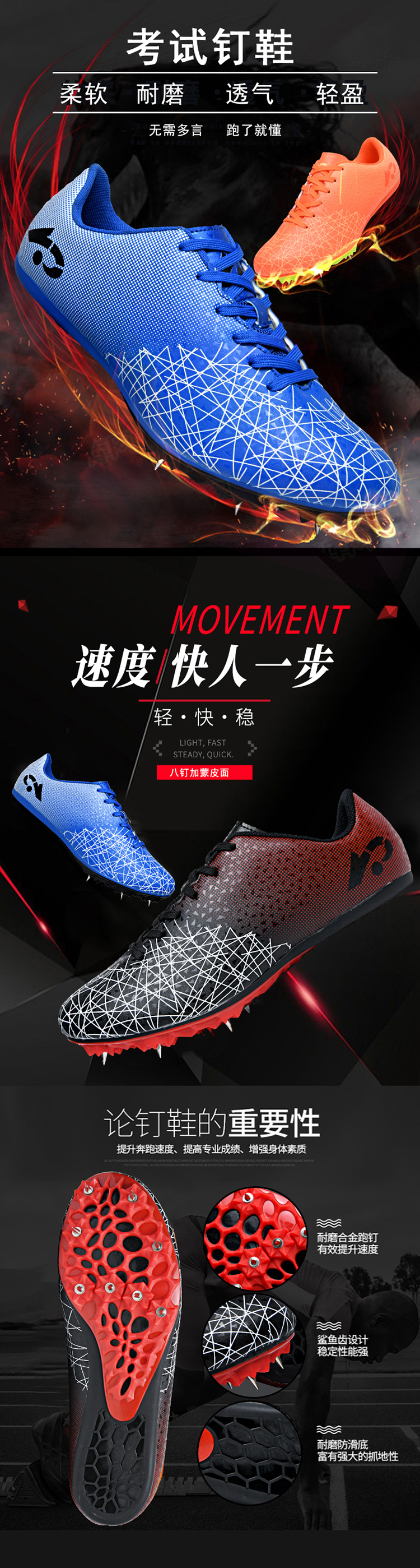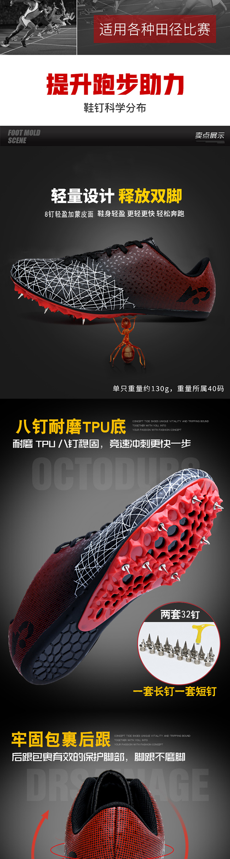 刺桐先生钉鞋八钉田径短跑男女专业钉子鞋中长跑步训练体考中考专用鞋跑步鞋长短钉