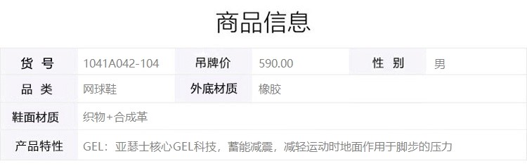 ASICS男鞋网球鞋网球GEL-GAME 7运动鞋1041A042-104 1041A042-104白色+银色